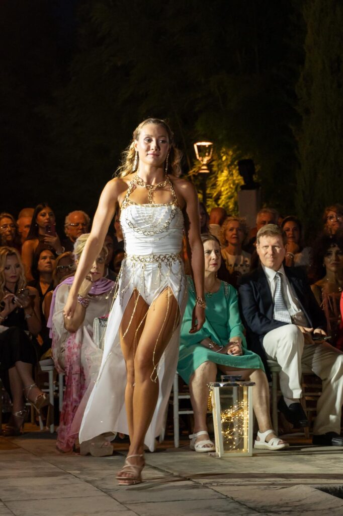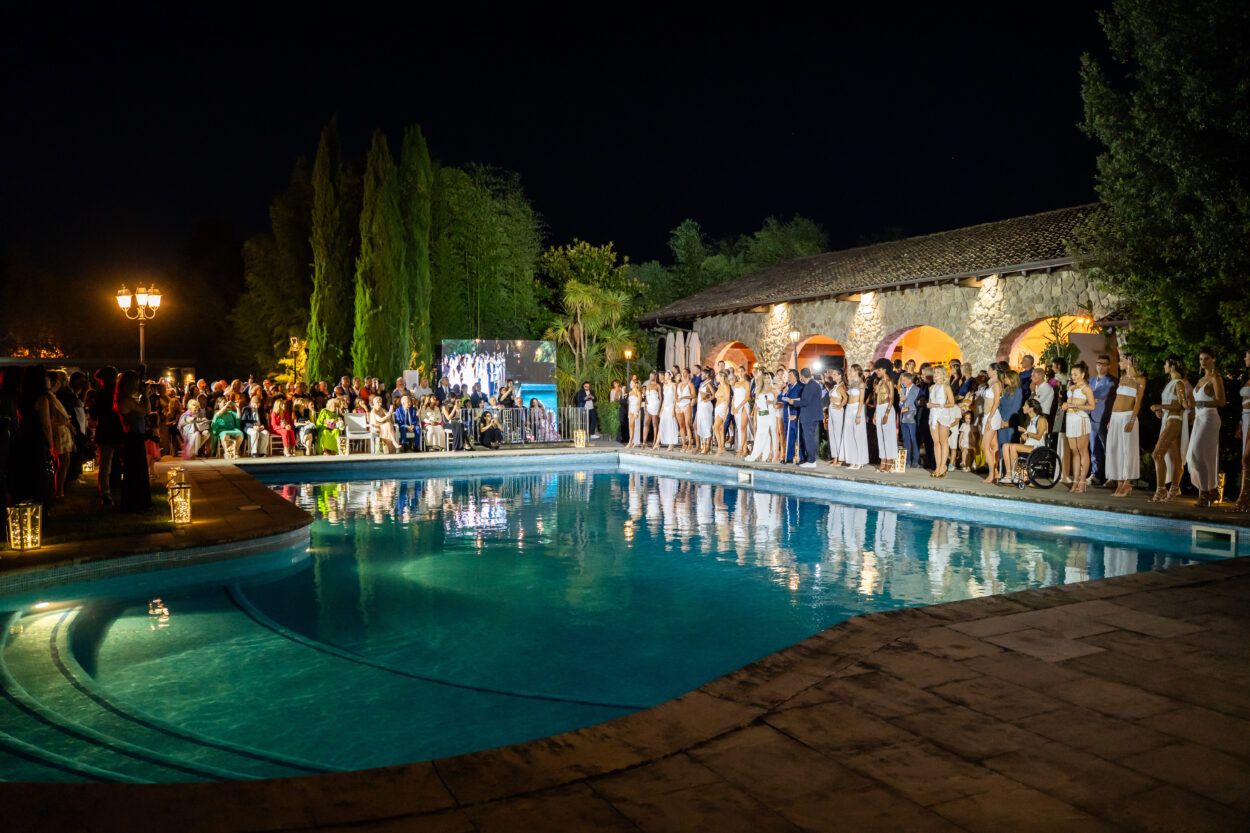 La serata ha poi preso vita nella cornice elegante di Villa Ecetra, dove una sfilata a bordo piscina ha presentato la linea esclusiva “Luci d’Oriente”, disegnata per l’occasione. Gioielli-scultura tra perle, maglie preziose e cristalli hanno adornato le 19 modelle e due ospiti d’eccezione: le atlete paralimpiche Domiziana Mecenate e Alessia Scortechini, che hanno sfilato in passerella incarnando perfettamente il binomio tra bellezza e forza interiore.